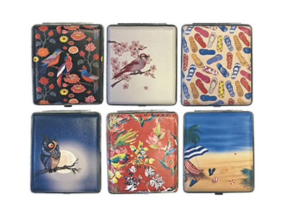 3101L20FUN Bird & Beach Designs Leather Wrapped Holds 20 Cigarettes 100s Size 12 pcs / Tray | $3.25/pc