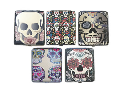3102L20CSKULL Candy Skull Designs Leather Wrapped Holds 20 Cigarettes King Size 12 pcs / Tray | $3.00/pc