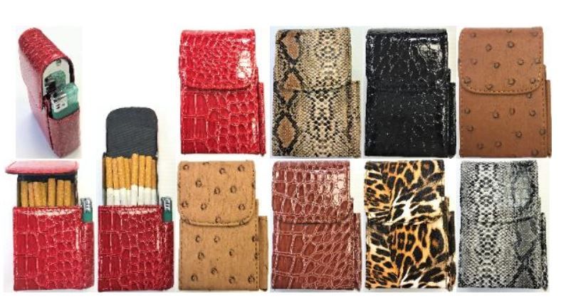 Leatherette Cigarette Case Dispenser W/ Lighter Pocket & Belt Loop. Pulls Up Your Cigarettes; 100s Size (Styles May Vary) ; 12pcs | $3.50/pc ;